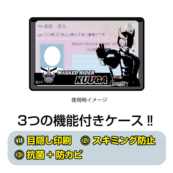 スキミング防止、目隠し印刷、抗菌機能のマイナンバーカードケース‼安心の日本製。表面はクウガ、裏面はマークがプリントされています。